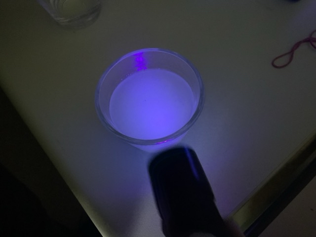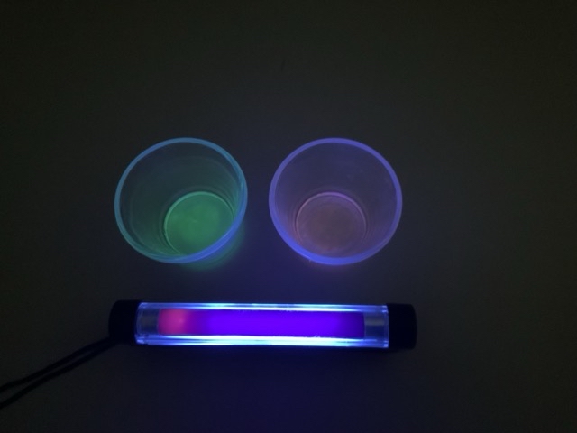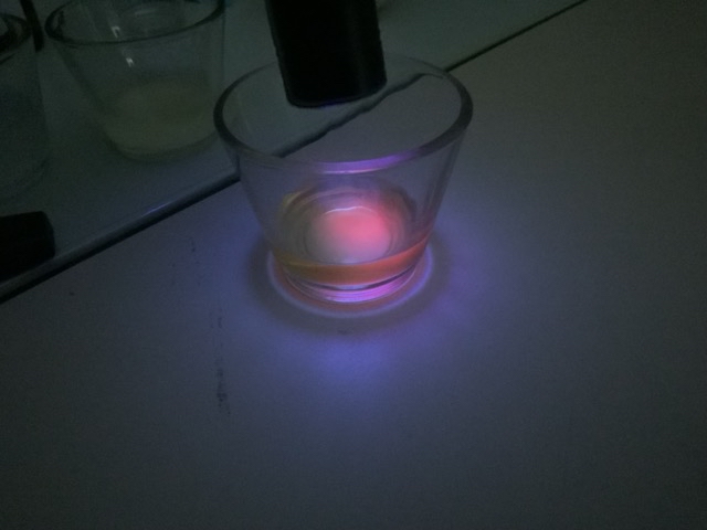 Es ist spannend zu sehen, dass die Geldscheine Elemente haben die unterschiedlich leuchten, je nachmdem welche Lampe man zur Anregung nutzt